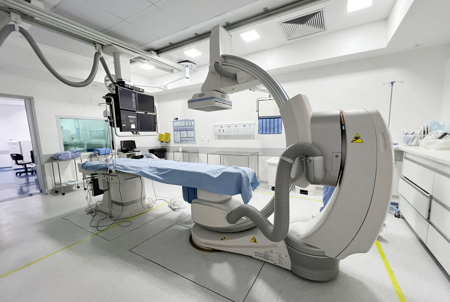 Dispõe de duas Salas Híbridas, únicas do Sul de Minas, com equipamento de hemodinâmica fixo, dotado de aquisição de imagem por subtração digital.